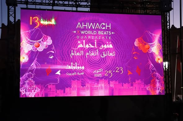 انطلقت، مساء أمس بمدينة ورزازات، فعاليات الدورة الثالثة عشرة من مهرجان أحواش، المنظم من 23 إلى 25 أكتوبر الجاري، تحت شعار: “فنون أحواش تعانق أنغام العالم”، في أجواء احتفالية تجمع بين عبق التراث وإبداع الحاضر، وبحضور رسمي ووازن ضم ممثلي السلطات المحلية والجهوية وعدداً من الفاعلين الثقافيين والفنيين.