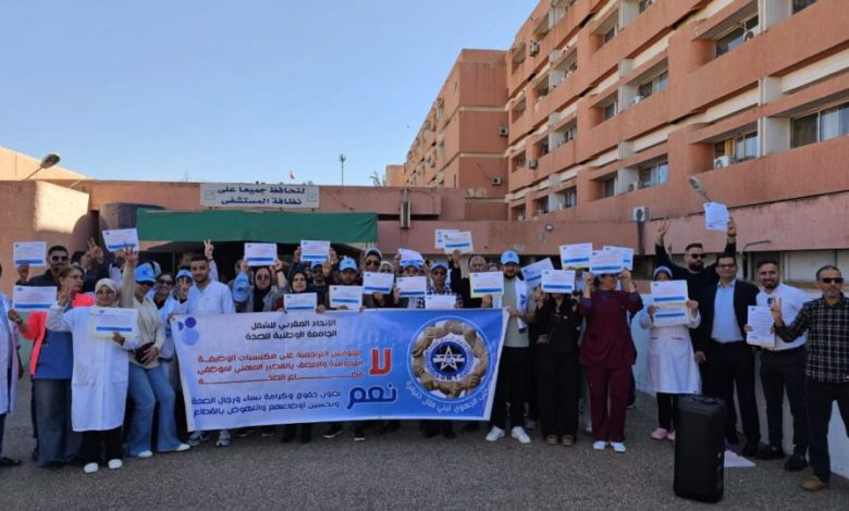 نظّمت الأطر الصحية المغربية، يوم الاثنين 10 نونبر 2025، وقفات احتجاجية إنذارية بمختلف مواقع العمل، بدعوة من الجامعة الوطنية للصحة التابعة للاتحاد المغربي للشغل، احتجاجا على محاولة الحكومة المساس بمركزية الأجور وصيغة الموظف العمومي، وذلك على هامش مناقشة الميزانية الفرعية لوزارة الصحة والحماية الاجتماعية لسنة 2026.