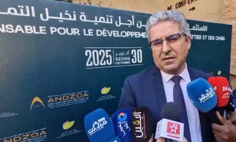 وأوضح الريفي على هامش فعاليات الدورة الرابعة عشرة للمعرض الدولي للتمور بأرفود، أن المديرية الجهوية للفلاحة بالجهة ضمن قامت بمجموعة من المبادرات العملية لمواجهة هذا التحدي، من بينها إنجاز سدود تحويلية، ومنشآت لتطعيم الفرشة المائية، بالإضافة إلى إنشاء عتبات وقرح مائية، تهدف جميعها إلى التخفيف من آثار الإجهاد المائي وحماية المنظومة الفلاحية في الجهة.