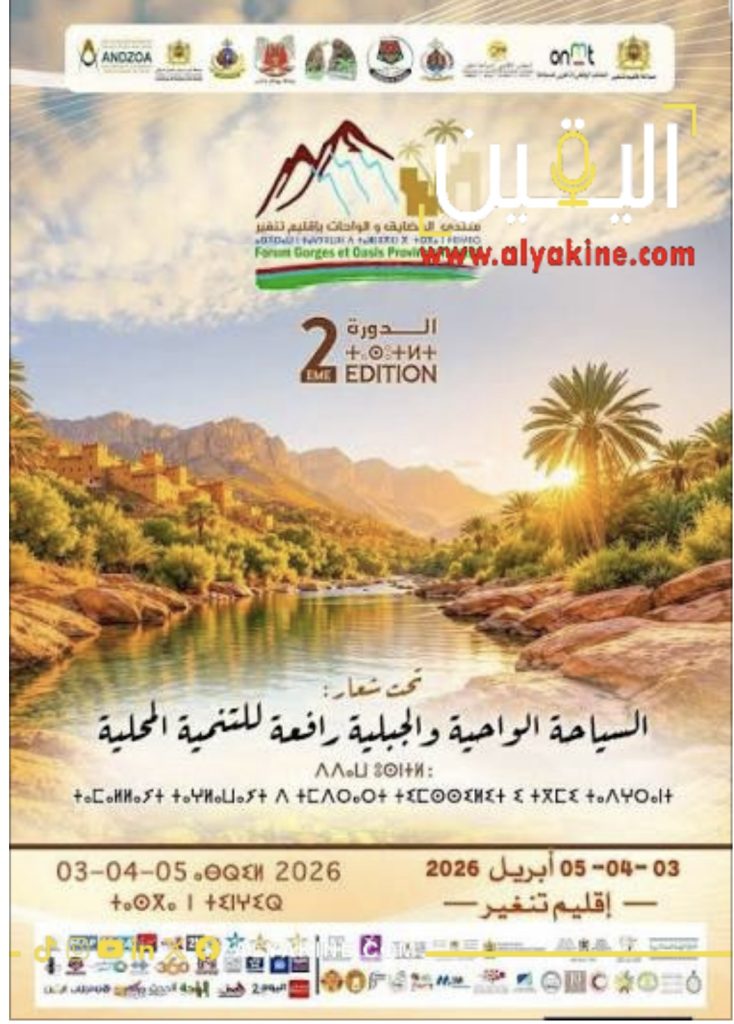 انطلقت بمدينة تنغير فعاليات الدورة الثانية لمنتدى المضايق والواحات، الذي يسلط الضوء هذه السنة على دور السياحة الواحية والجبلية في تحقيق التنمية المحلية، وذلك بمشاركة فاعلين مؤسساتيين وخبراء من داخل المغرب وخارجه.
