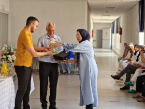 دموع وكلمات وشهادات حية وامتنان في حق المحالين على التقاعد تلك التي عبر عنها زملاؤهم وزميلاتهم  في العمل، أو تلك التي عبرت عنها  بصدق والدموع تغالبها  الدكتورة فاطمة اشبعتو  خلال تركيزها على الخصال الحميدة التي كانت تميز المحالين على التقاعد  طوال اشتغالهم معها؛ وخاصة طوال فترة كوفيد19 ؛وعددت مناقبهم ؛و مواظبتهم في عملهم واستعدادهم لتحمل المسؤولية والقيام بكل المهام.