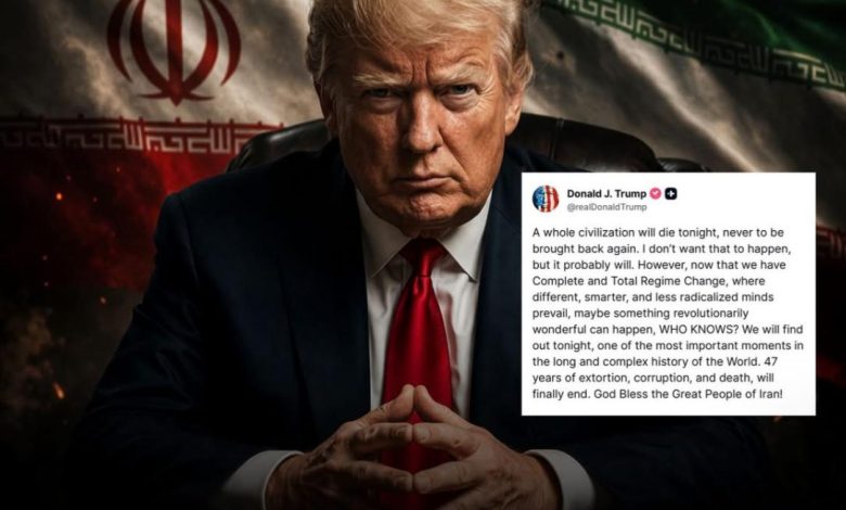 أثار الرئيس الأمريكي دونالد ترمب جدلًا واسعًا مساء اليوم، بعد تحذيره من أن “حضارة كاملة ستموت الليلة” إذا لم يتم التوصل إلى اتفاق عاجل لإنهاء الصراع مع إيران. جاء تصريح ترمب في سياق توتر متصاعد بين واشنطن وطهران، وسط استمرار المواجهات العسكرية وتهديدات متبادلة.