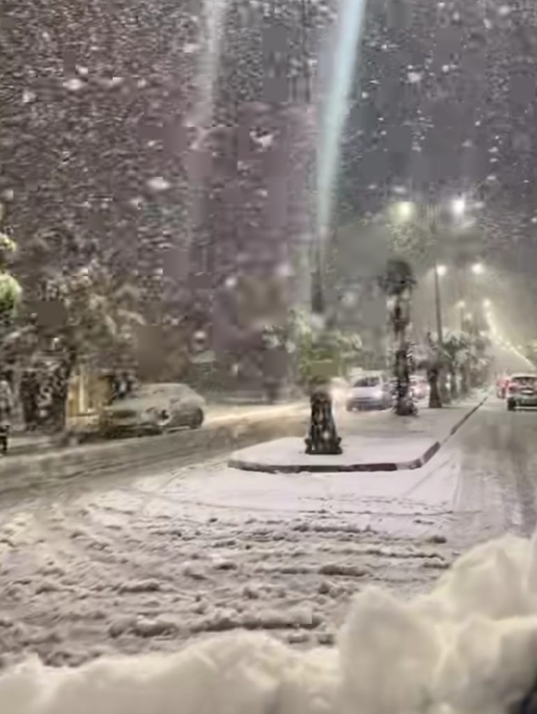 شهدت مدينة وجدة، مساء الثلاثاء، تساقطات ثلجية لافتة أعادت للأذهان مشاهد غابت عن عاصمة الشرق لسنوات، بعدما اكتست شوارعها وساحاتها الرئيسية بحلة بيضاء نادرة، خلقت أجواء استثنائية من البهجة وسط الساكنة