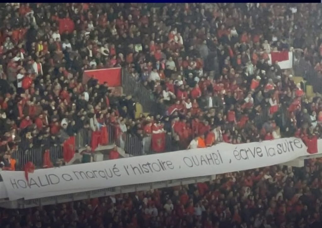 ورفع المشجعون لافتة كتب عليها: “الركراكي سجل التاريخ.. وهبي أكمل البقية”، تعبيرًا عن امتنانهم لما قدمه كلا المدربين في مسيرة الفريق الوطني.