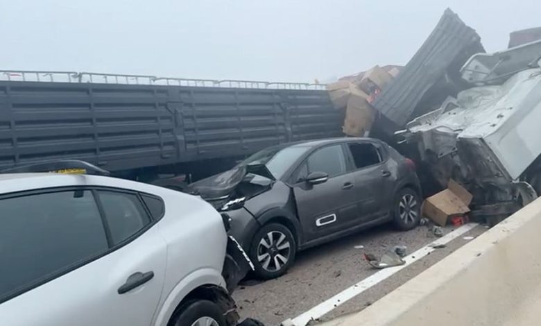 ووفق المعطيات الأولية، فقد تسبب الحادث، الذي أسفر عن خسائر مادية وبشرية، في اصطدام جماعي شمل أكثر من 20 سيارة وشاحنة من الحجم الكبير، بالإضافة إلى عدد من المركبات الخفيفة.