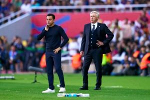 انتهى كلاسيكو الليغا بالبيرنابيو، وابتسم لأصحاب الأرض الذين يقفون على حافة حسم البطولة الإسبانية السادسة والثلاثين لصالحهم، بعدما أصبح رصيدهم إحدى وثمانين نقطة، بواقع إحدى عشرة نقطة عن مطارده برشلونة الذين تجمد رصيده لدى الإحدى والسبعين نقطة. فقد خسر “تشافي” الكلاسيكو الحادي عشر له كمدرب للبارصا.
