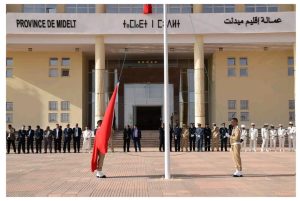عمالة ميدلت مراسيم تحية العلم الوطني بمناسبة الذكرى 25 لتربع صاحب الجلالة الملك محمد السادس نصره الله و أيده على عرش أسلافه الميامين