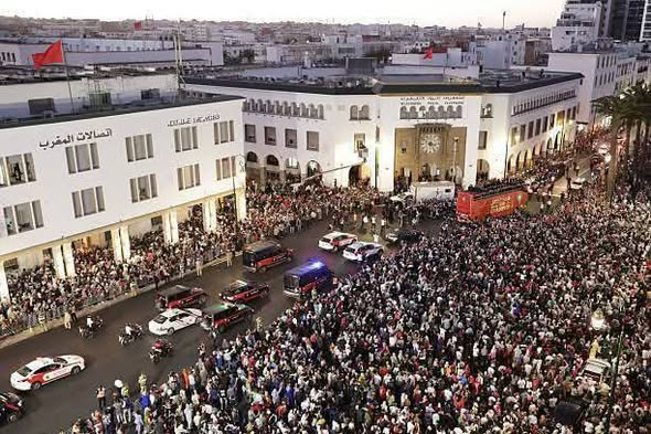 وانطلقت الاحتفالات عقب الاستقبال الملكي المهيب بالقصر الملكي بالرباط، الذي ترأسه صاحب السمو الملكي ولي العهد الأمير مولاي الحسن، بتكليف من جلالة الملك محمد السادس، حيث خصصت للاعبين والطاقم التقني والإداري حافلة مكشوفة مزينة بالأعلام الوطنية، جابت أبرز شوارع العاصمة وسط هتافات جماهيرية وأهازيج شعبية وزغاريد النساء.