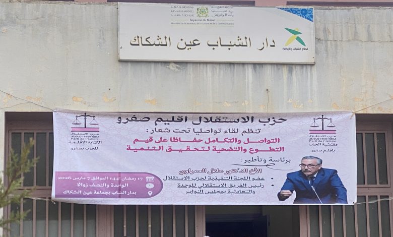 نظم حزب الاستقلال بإقليم صفرو لقاءً تواصلياً بدار الشباب بمدينة عين شكاك تحت شعار “التواصل والتكامل حفاظاً على قيم التطوع والتضحية لتحقيق التنمية”، بحضور عدد من مناضلي الحزب وفعاليات محلية.
