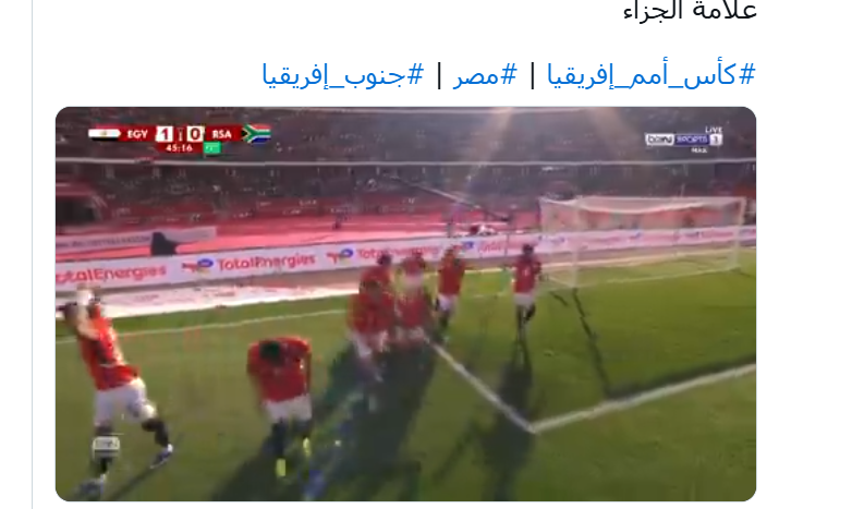 انتهي الشوط الأول من مباراة منتخب مصر أمام نظيره الجنوب أفريقي بتقدم منتخب مصر بهدف دون رد، ضمن مواجهات الجولة الثانية من كأس أمم أفريقيا.