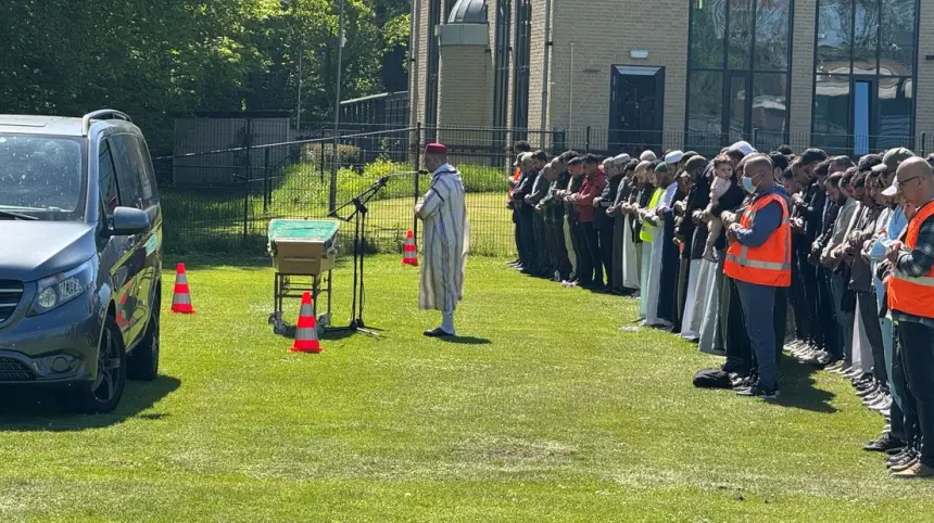 حيث تجمع المشيعون، ومن بينهم عمدة المدينة وأصدقاء الضحية وزملاؤها في الدراسة وعدد من الجيران، بالمجمع الرياضي “هاجرهوف” القريب من مسجد “توحيد”، و أقيمت صلاة الجنازة في أجواء مؤثرة عكست حجم الفاجعة.