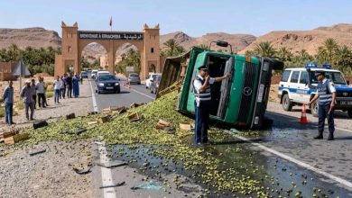 انقلاب شاحنة محمّلة بالزيتون يستنفر الدرك الملكي بمدخل الرشيدية ويعطل حركة السير