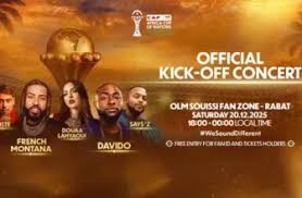 أفادت الكونفدرالية الإفريقية لكرة القدم أنها ستنظم حفلا فنيا ضخما بمنطقة المشجعين OLM السويسي بمدينة الرباط، وذلك يوم السبت 20 دجنبر 2025 ابتداء من الساعة السادسة مساءً، في إطار الأنشطة المرافقة لنهائيات كأس إفريقيا للأمم 2025 التي يستضيفها المغرب.